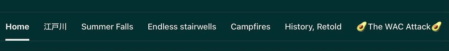Like any animal shedding its skin, my interests, what’s focused on in my writing, are ever-shifting. Yet another side of me can’t sleep at night if things aren’t structured, so I often reorganize and refine my publication. Evolutions, if you will, towards better content for you all on SUBSTACK, and beyond.